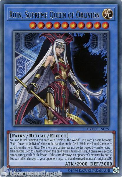 - CYHO-EN029 Ruin, Supreme Queen of Oblivion Rare UNL Edition Mint YuGiOh Card