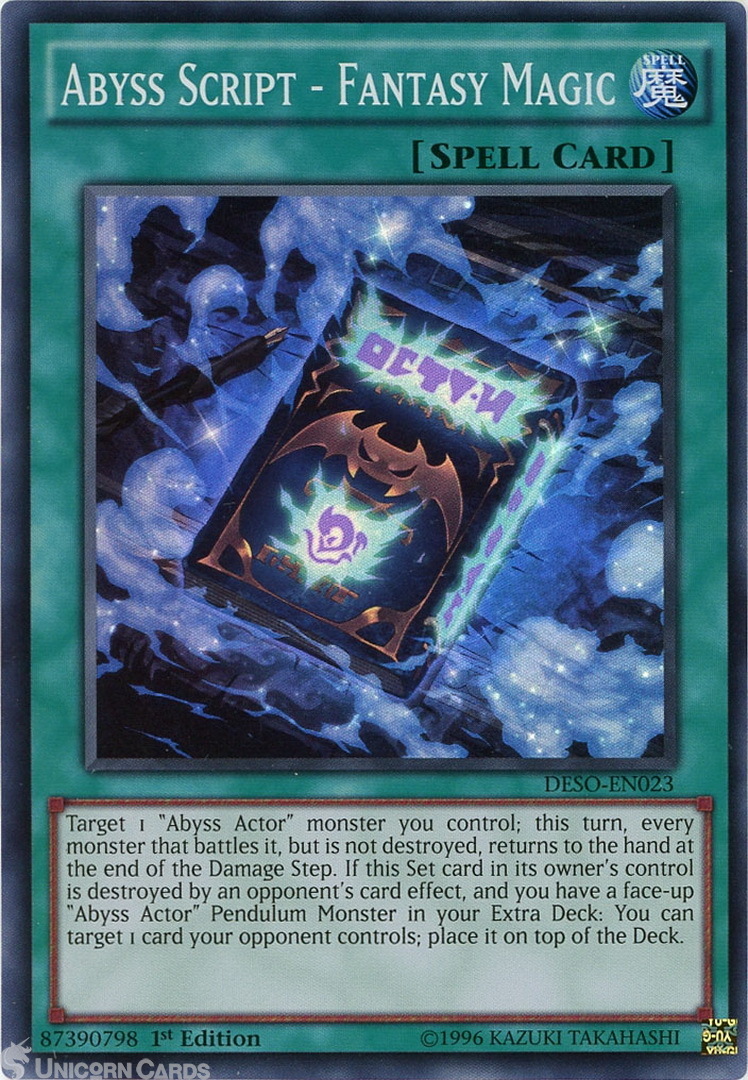 - DESO-EN023 Abyss Script - Fantasy Magic Super Rare 1st edition Mint YuGiOh Card