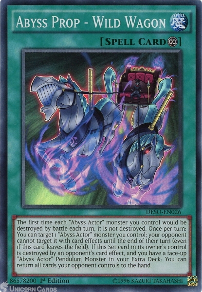 - DESO-EN026 Abyss Prop - Wild Wagon Super Rare 1st edition Mint YuGiOh Card