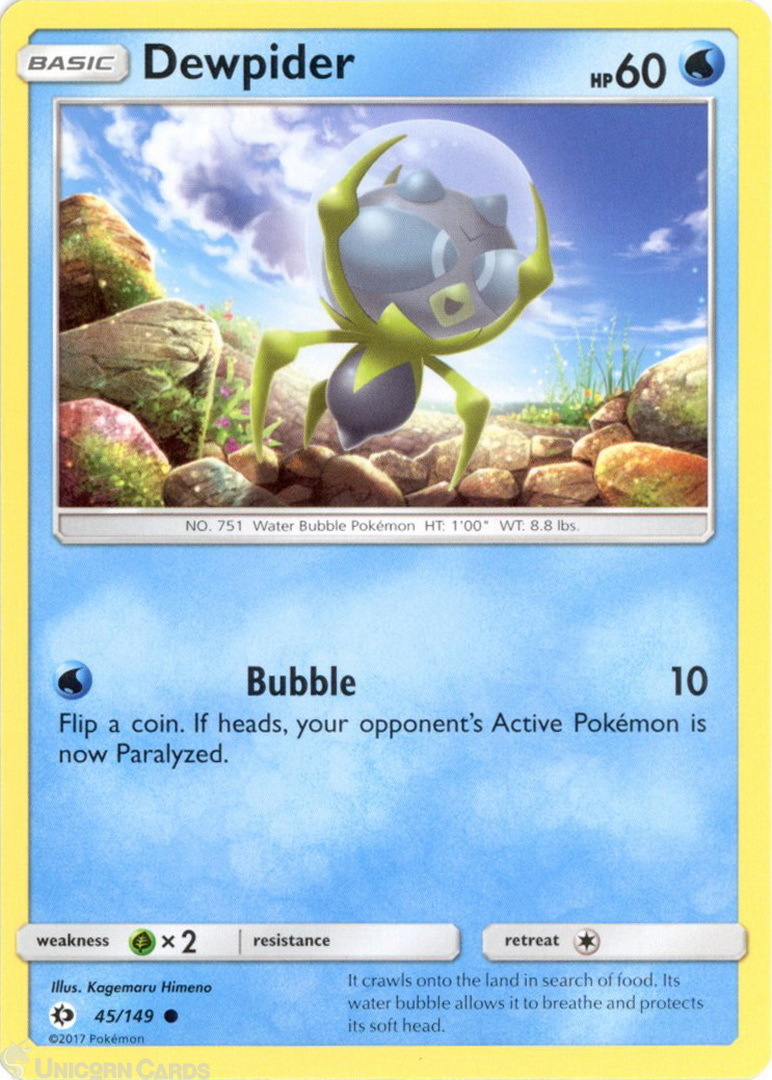 Dewpider 45/149 : Common Mint/Near Mint Pokemon Card : SM01: Sun & Moon