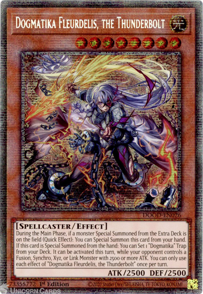 - DOOD-EN026 Dogmatika Fleurdelis, the Thunderbolt : Starlight Rare 1st Edition Mint YuGiOh Card