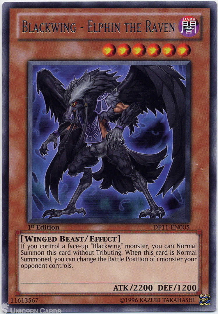 - DP11-EN005 Blackwing - Elphin the Raven Rare 1st Edition Yu-Gi-Oh! Card