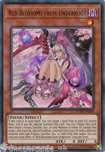 - DUDE-EN006 Red Blossoms from Underroot Ultra Rare 1st Edition Mint YuGiOh Card
