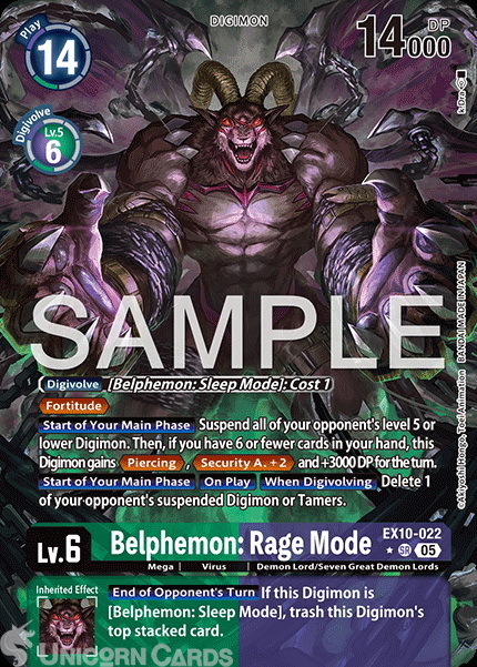 EX10-022 Belphemon: Rage Mode : Super Rare Alternative Art Digimon Card : EX10: Sinister Order