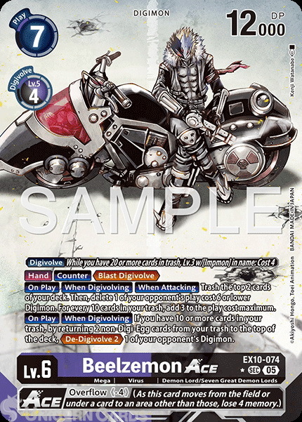 EX10-074 Beelzemon ACE : Secret Rare Alternative Art Digimon Card : EX10: Sinister Order