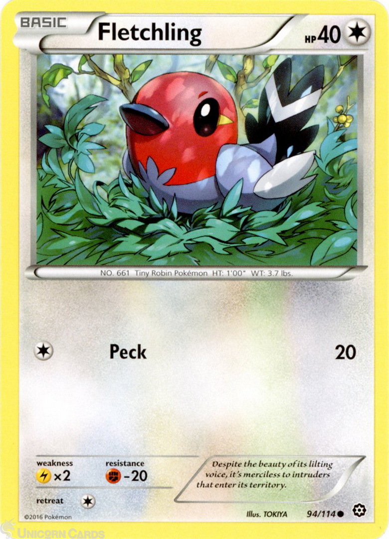 Fletchling 94/114 : Common Mint/Near Mint Pokemon Card : XY11: Steam Siege