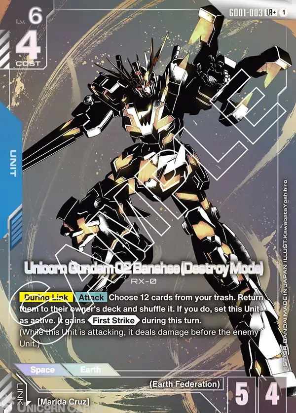 GD01-003 Unicorn Gundam 02 Banshee (Destroy Mode) : LR+ Holofoil Alternative Art Gundam TCG Card : GD01: Newtype Rising