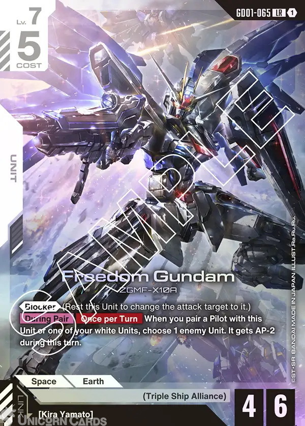 GD01-065 Freedom Gundam : LR Holofoil Gundam TCG Card : GD01: Newtype Rising