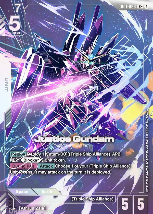 GD01-066 Justice Gundam : LR+ Holofoil Alternative Art Gundam TCG Card : GD01: Newtype Rising