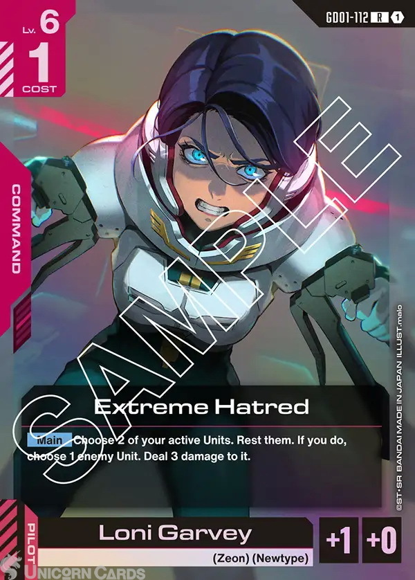 GD01-112 Extreme Hatred : R Holofoil Gundam TCG Card : GD01: Newtype Rising