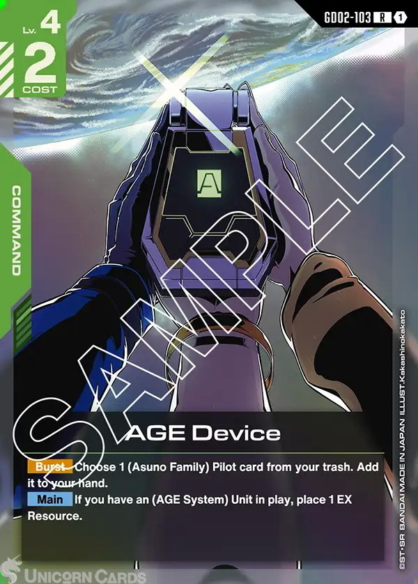 GD02-103 AGE Device : R Holofoil Gundam TCG Card : GD02: Dual Impact