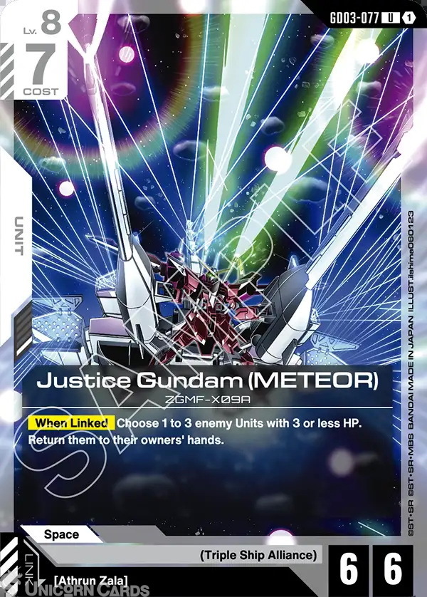GD03-077 Justice Gundam (METEOR) : UC Normal Gundam TCG Card : GD03: Steel Requiem