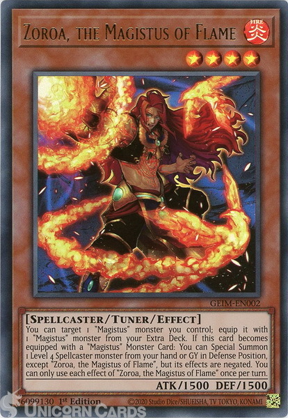 - GEIM-EN002 Zoroa, the Magistus of Flame Ultra Rare 1st Edition Mint YuGiOh Card