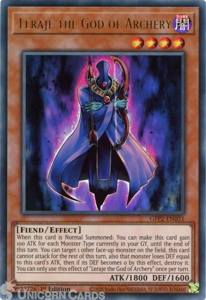 - GFP2-EN031 Leraje the God of Archery Ultra Rare 1st Edition Mint YuGiOh Card