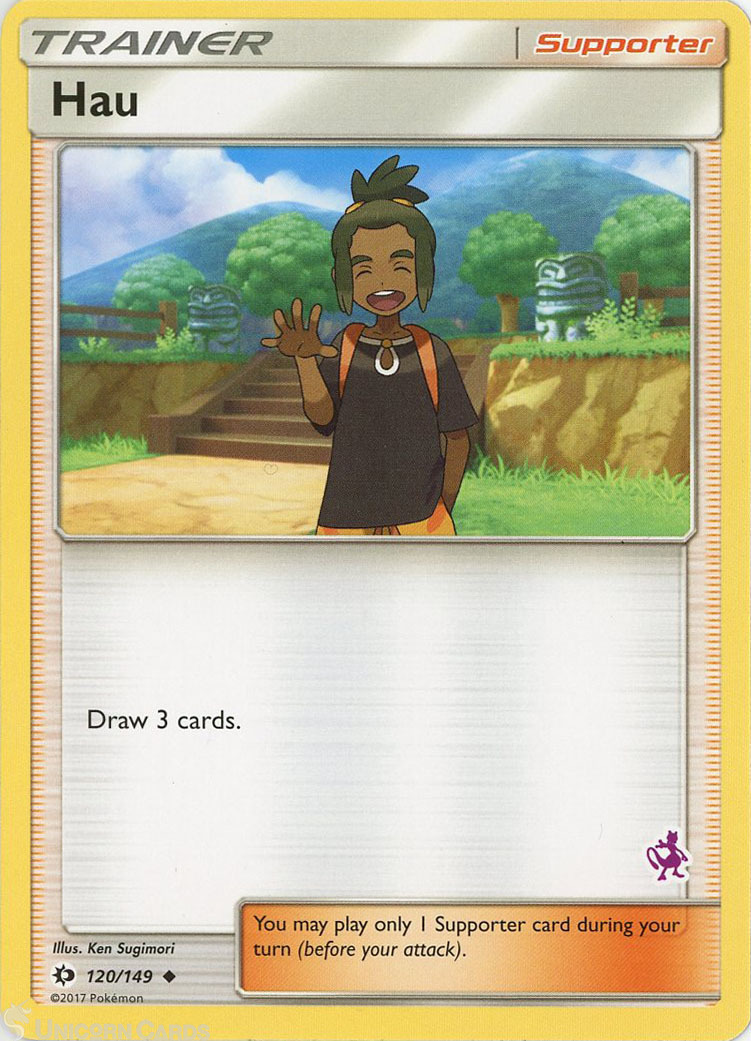 Hau 120/149 Uncommon Mint Pokemon Card :: Mewtwo Stamp ::