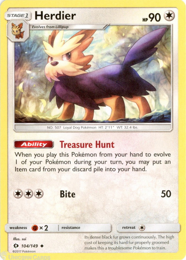 Herdier 104/149 : Uncommon Mint/Near Mint Pokemon Card : SM01: Sun & Moon