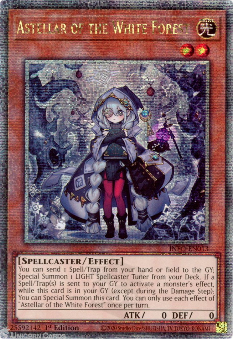 - INFO-EN013 Astellar of the White Forest : Quarter Century Secret Rare 1st Edition YuGiOh Card