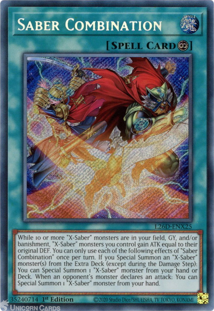 - L26D-ENX25 Saber Combination : Secret Rare 1st Edition Mint YuGiOh Card