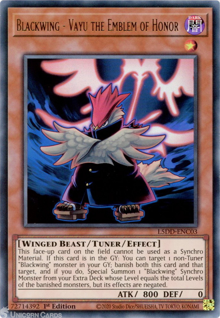 - L5DD-ENC03 Blackwing - Vayu the Emblem of Honor : Ultra Rare 1st Edition Mint YuGiOh Card