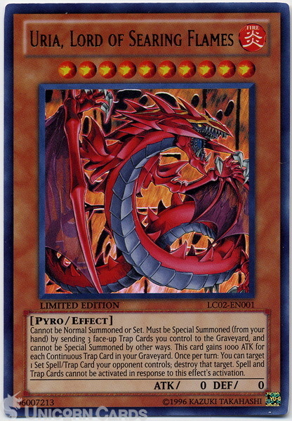 - LC02-EN001 Uria, Lord of Searing Flames Ultra Rare Mint YuGiOh Card