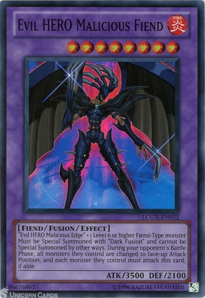 - LCGX-EN072 Evil HERO Malicious Fiend Super Rare UNL Edition Mint YuGiOh Card