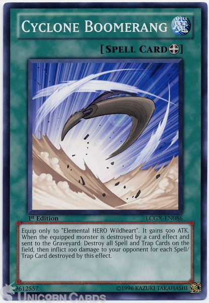 - LCGX-EN086 Cyclone Boomerang 1st Edition Mint YuGiOh Card