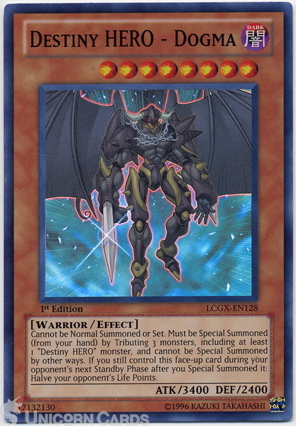 - LCGX-EN128 Destiny HERO - Dogma Super Rare 1st edition Mint YuGiOh Card