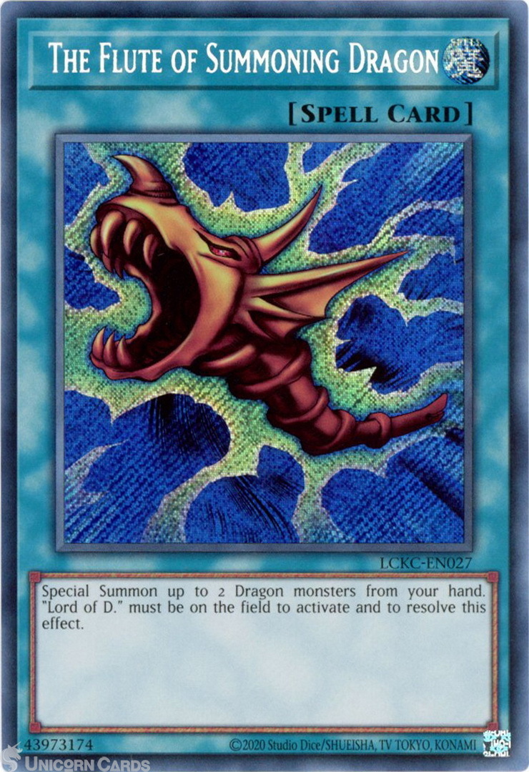 - LCKC-EN027 The Flute of Summoning Dragon : Secret Rare UNL Edition Mint YuGiOh Card