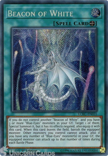 - LCKC-EN035 Beacon of White Secret Rare 1st Edition Mint YuGiOh Card