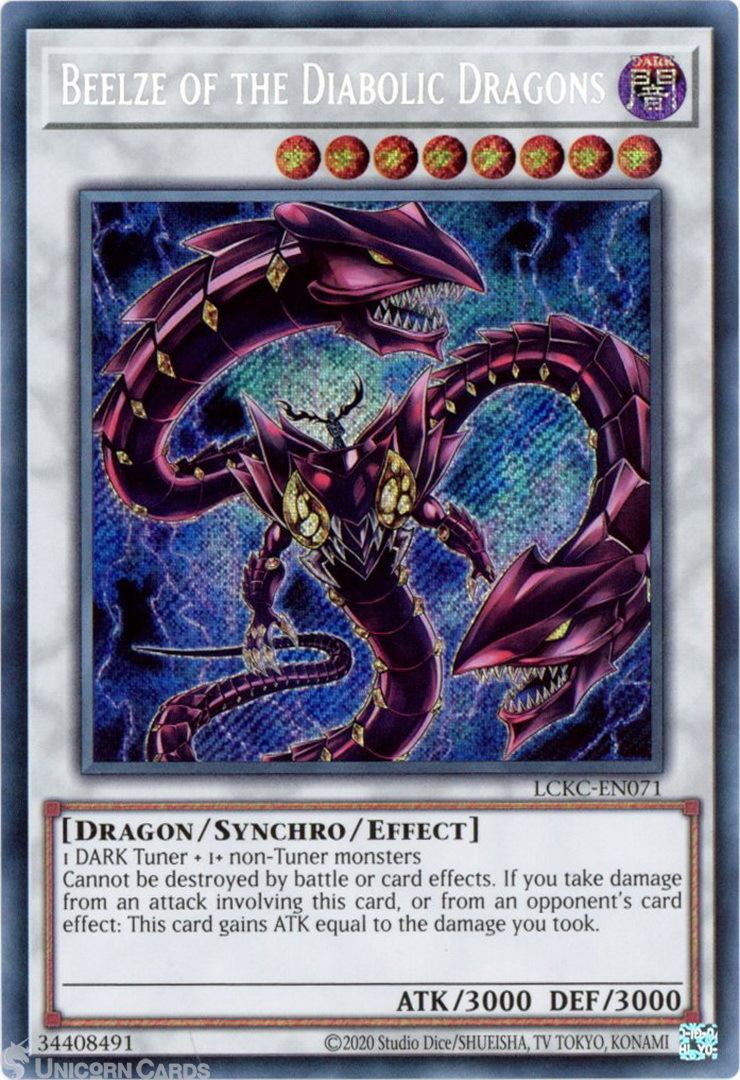 - LCKC-EN071 Beelze of the Diabolic Dragons : Secret Rare UNL Edition Mint YuGiOh Card