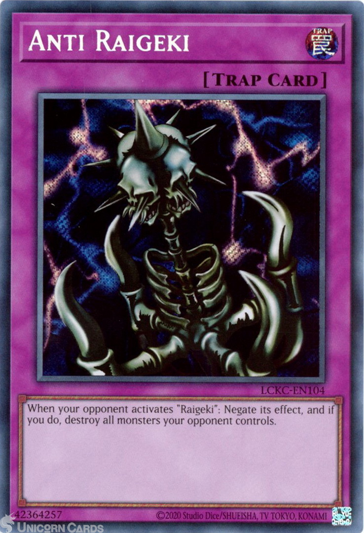 - LCKC-EN104 Anti Raigeki : Secret Rare UNL Edition Mint YuGiOh Card