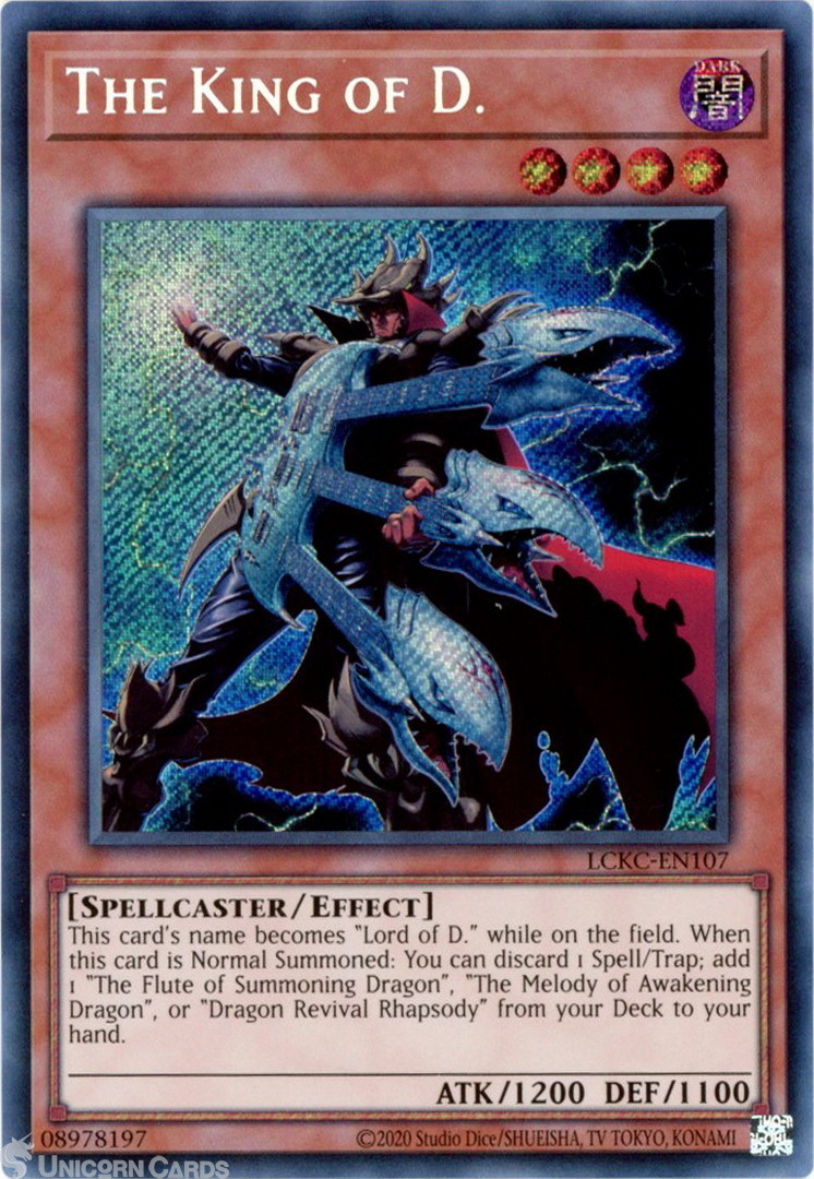 - LCKC-EN107 The King of D. : Secret Rare UNL Edition Mint YuGiOh Card