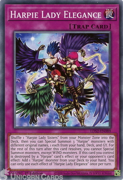 - LDS2-EN089 Harpie Lady Elegance Common 1st Edition Mint YuGiOh Card