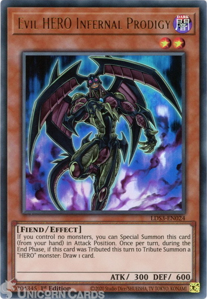 - LDS3-EN024 Evil HERO Infernal Prodigy :: Ultra Rare 1st Edition Mint YuGiOh Card