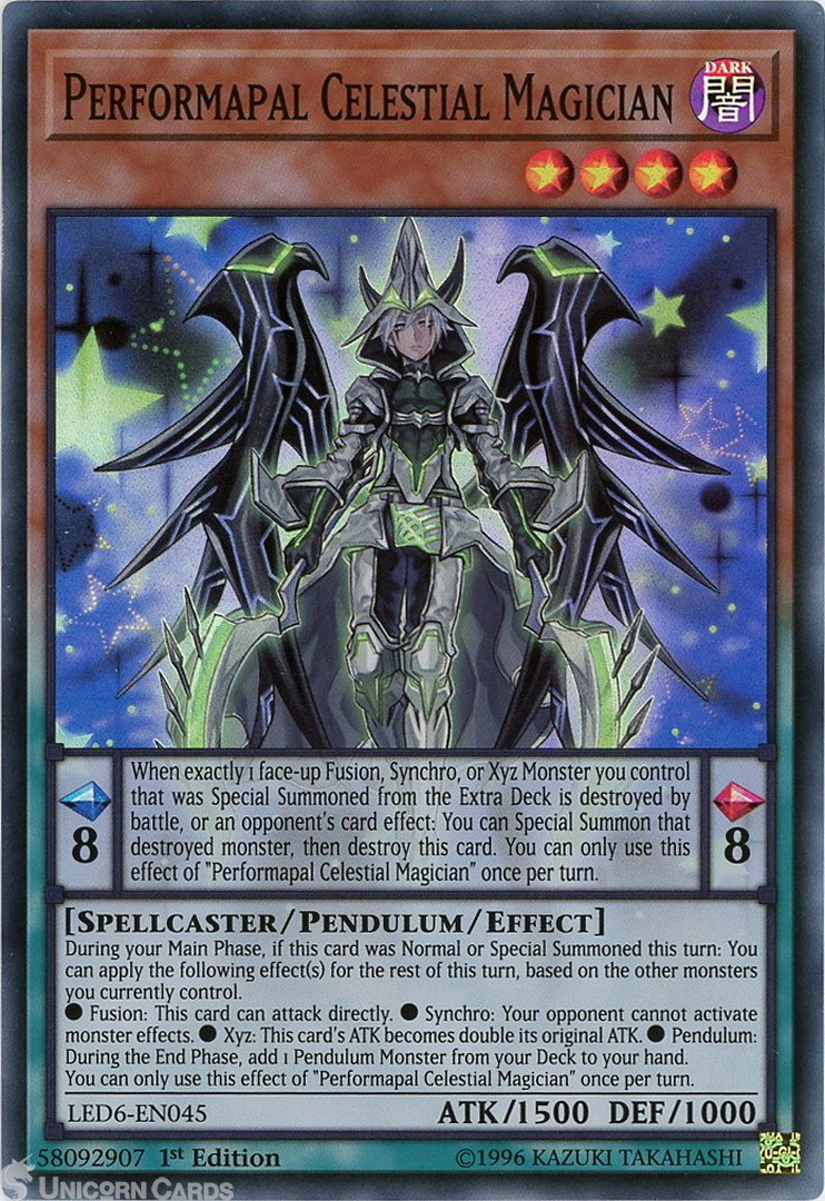 - LED6-EN045 Performapal Celestial Magician Super Rare 1st Edition Mint YuGiOh Card