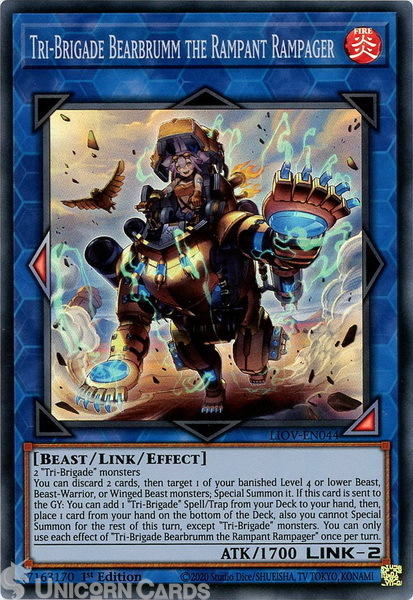 - LIOV-EN044 Tri-Brigade Bearbrumm the Rampant Rampager Super Rare 1st Edition Mint YuGiOh Card