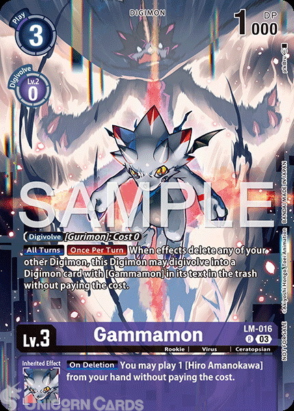 LM-016 Gammamon : Rare Foil Box Topper Digimon Card : EX10: Sinister Order