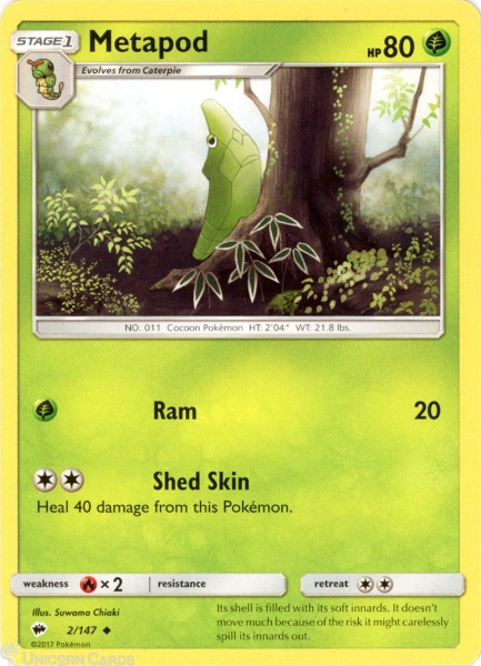 Metapod 2/147 : Uncommon Mint/Near Mint Pokemon Card : SM03: Burning Shadows