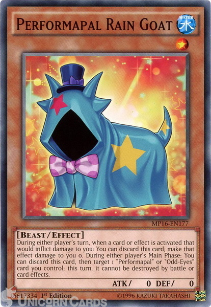 - MP16-EN177 Performapal Rain Goat Common 1st Edition Mint YuGiOh Card