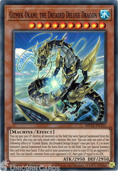 - MP21-EN121 Gizmek Okami, the Dreaded Deluge Dragon Super Rare 1st Edition Mint YuGiOh Card