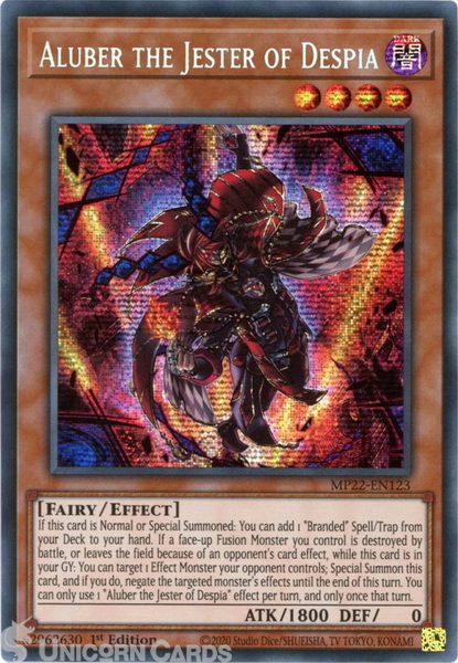 - MP22-EN123 Aluber the Jester of Despia Prismatic Secret Rare 1st Edition Mint YuGiOh Card