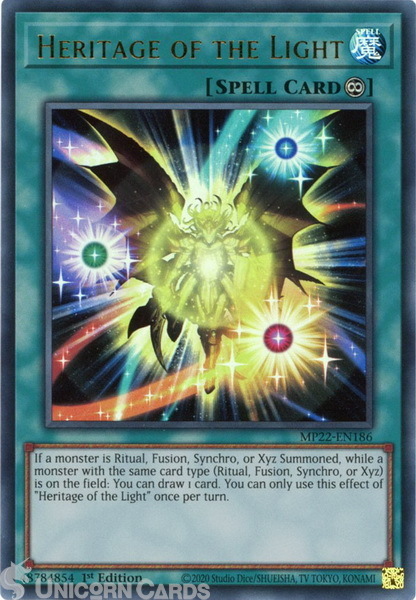 - MP22-EN186 Heritage of the Light Ultra Rare 1st Edition Mint YuGiOh Card