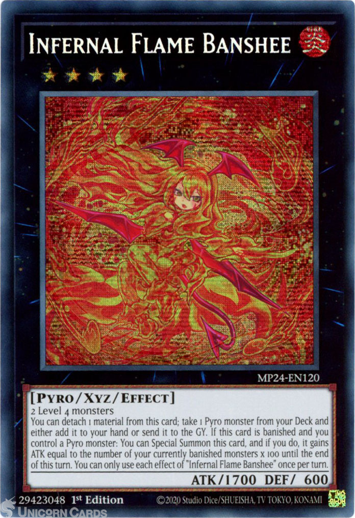 - MP24-EN120 Infernal Flame Banshee : Prismatic Secret Rare 1st Edition YuGiOh Card