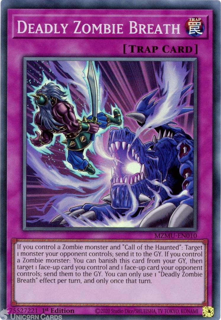 - MZMU-EN010 Deadly Zombie Breath : Super Rare 1st Edition Mint YuGiOh Card