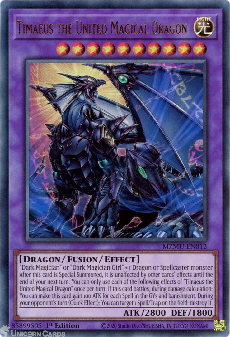 - MZMU-EN012 Timaeus the United Magical Dragon : Ultra Rare 1st Edition Mint YuGiOh Card