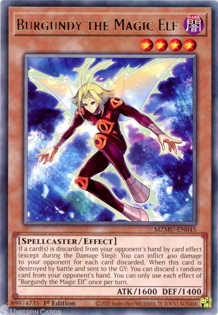 - MZMU-EN045 Burgundy the Magic Elf : Rare 1st Edition Mint YuGiOh Card