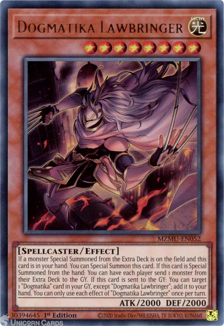 - MZMU-EN052 Dogmatika Lawbringer : Ultra Rare 1st Edition Mint YuGiOh Card