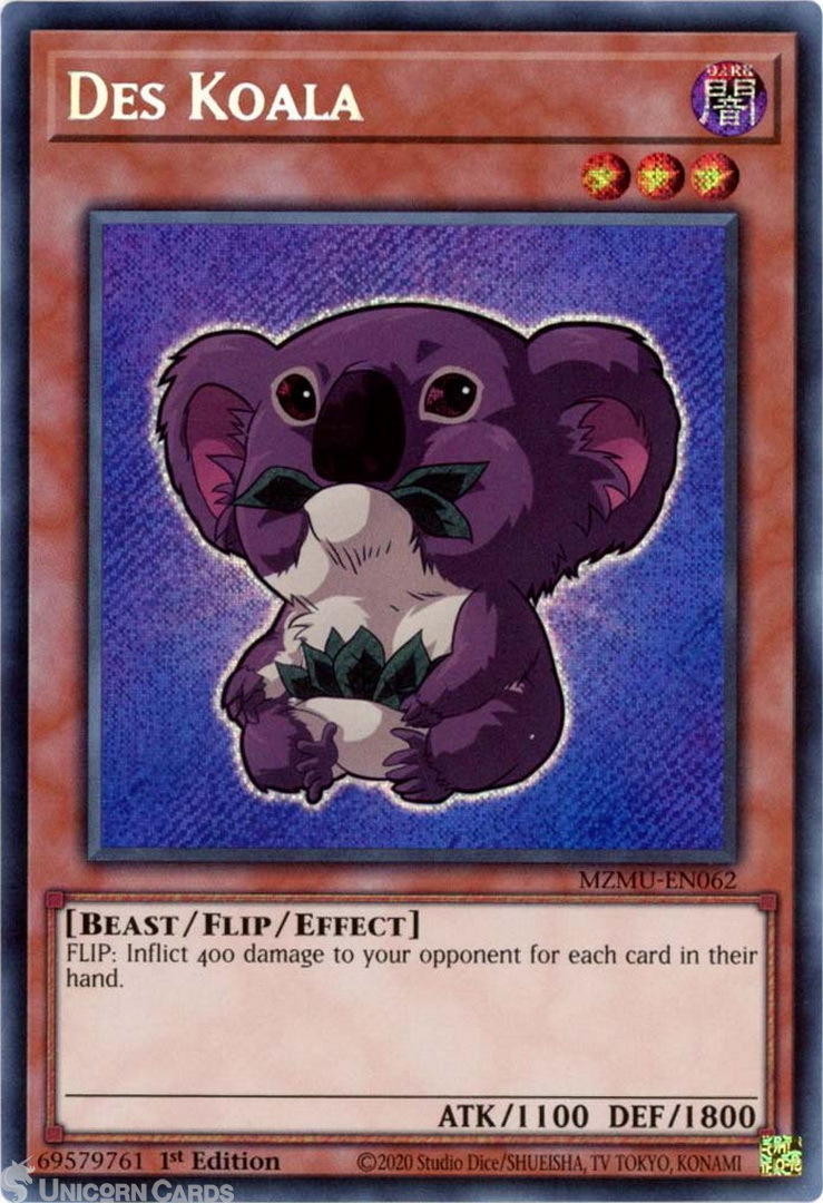 - MZMU-EN062 Des Koala : Secret Rare 1st Edition Mint YuGiOh Card
