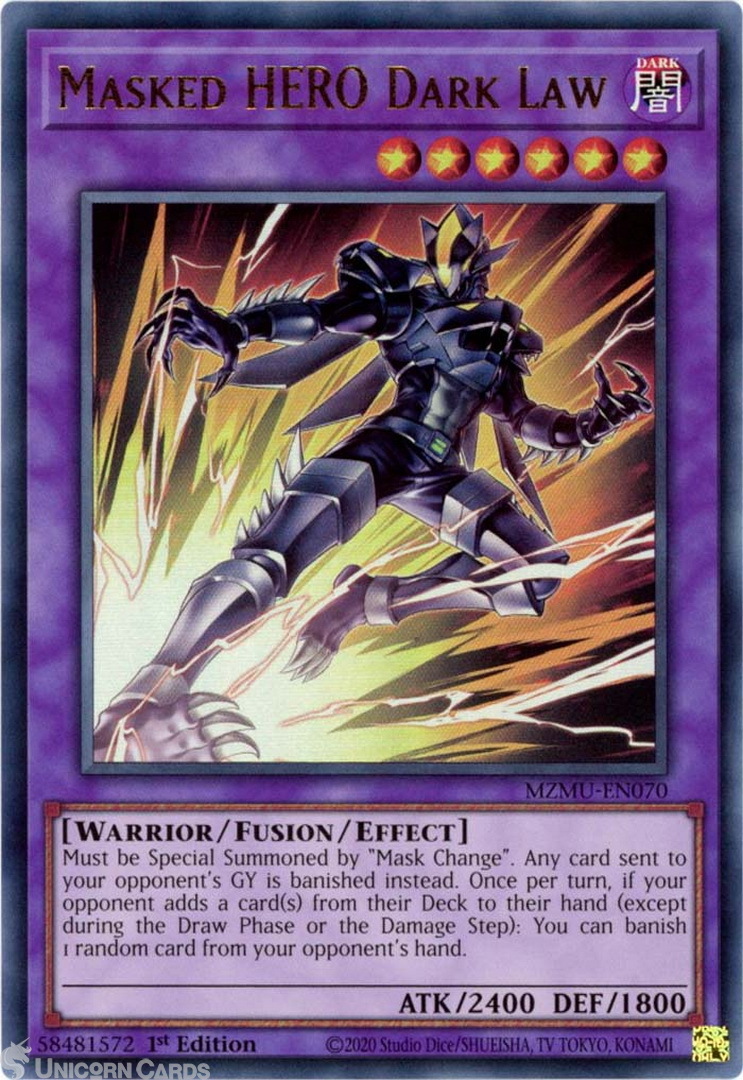 - MZMU-EN070 Masked HERO Dark Law : Ultra Rare 1st Edition Mint YuGiOh Card