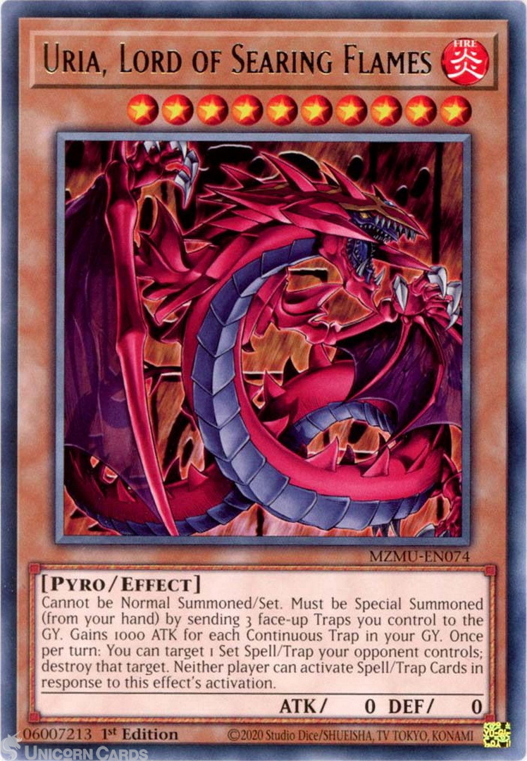 - MZMU-EN074 Uria, Lord of Searing Flames : Rare 1st Edition Mint YuGiOh Card